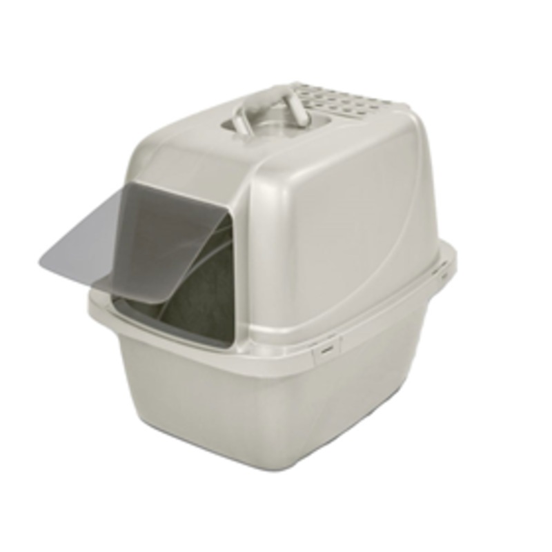 Keep odor and litter scatter under control with the Van Ness Enclosed Cat Litter Pan. This enclosed little pan comes with a latched hood, a odor flap door, and the replaceable Zerolite filter to help contain and eliminate odors in this space. The material used is glossy to make it easier to clean. This is excellent for cats who like to dig as it prevents litter from spilling as well as for larger cats.