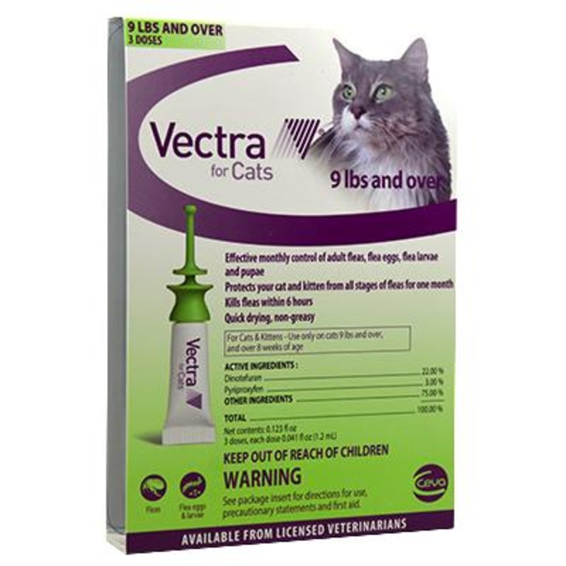 Vectra Topical Solution is a once a month topical application that controls adult fleas, flea eggs, flea larvae, and flea pupae in cats.