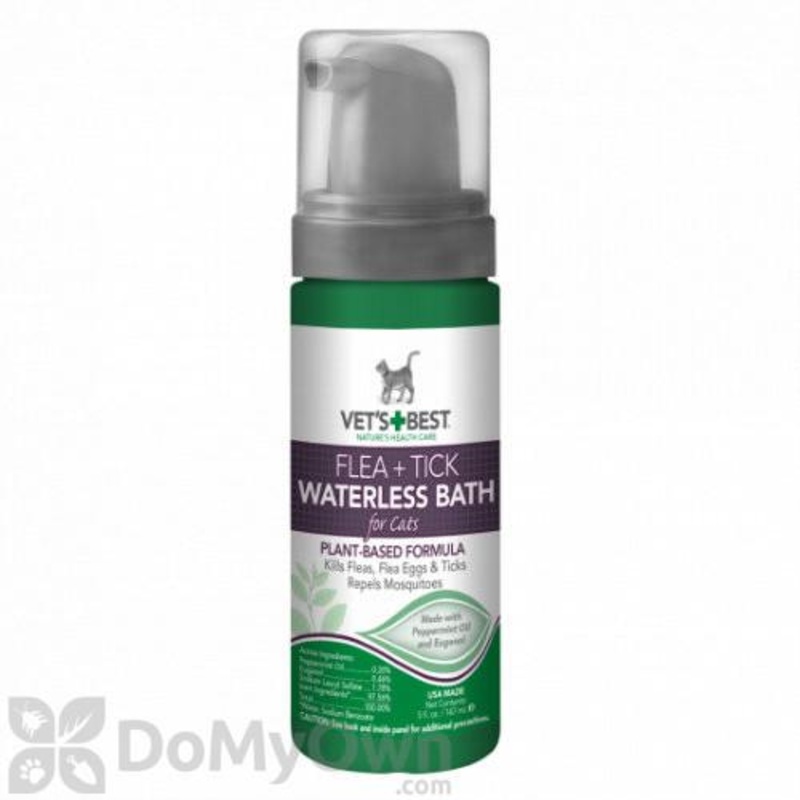 Vet's Best Flea and Tick Waterless Bath Foam Dry Shampoo for Cats is an excellent, easy-to-use bath foam which eliminates ticks, fleas, and flea eggs by contact without the use of harsh chemicals. This waterless shampoo offers a quick and easy, fast-drying