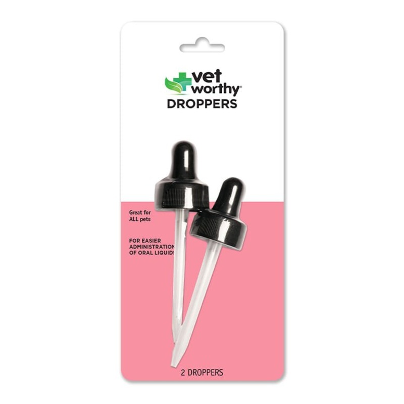 Vet Worthy Droppers, 2 pkRecommended for easier administration of oral liquids or oral feeding. There droppers provide an easy application for any liquids to all pets.Directions:To fill with liquid, insert the dropper tip into the liquid, squeeze the bulb