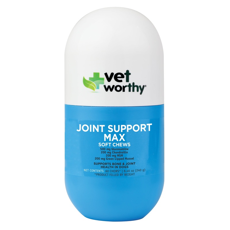 Vet Worthy Joint Support Max is recommended to ease joint stiffness due to normal daily exercise and activity. This veterinarian formulation enhances the functions of the joint and connective tissue and is an enticing liver flavor your dog will love.