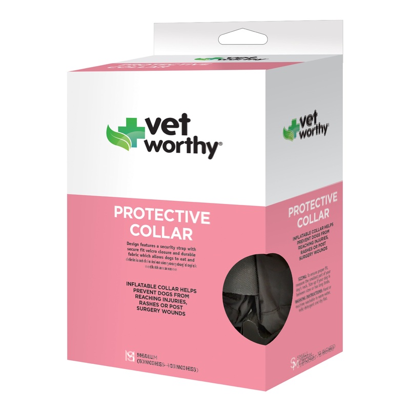 Help your furry friend heal faster from injuries with the Vet Worthy Inflatable Protective Dog Collar. This inflatable collar features flexible fabric with a security strap that prevents your paw-tner from reaching injuries, rashes or post-surgery wounds.
