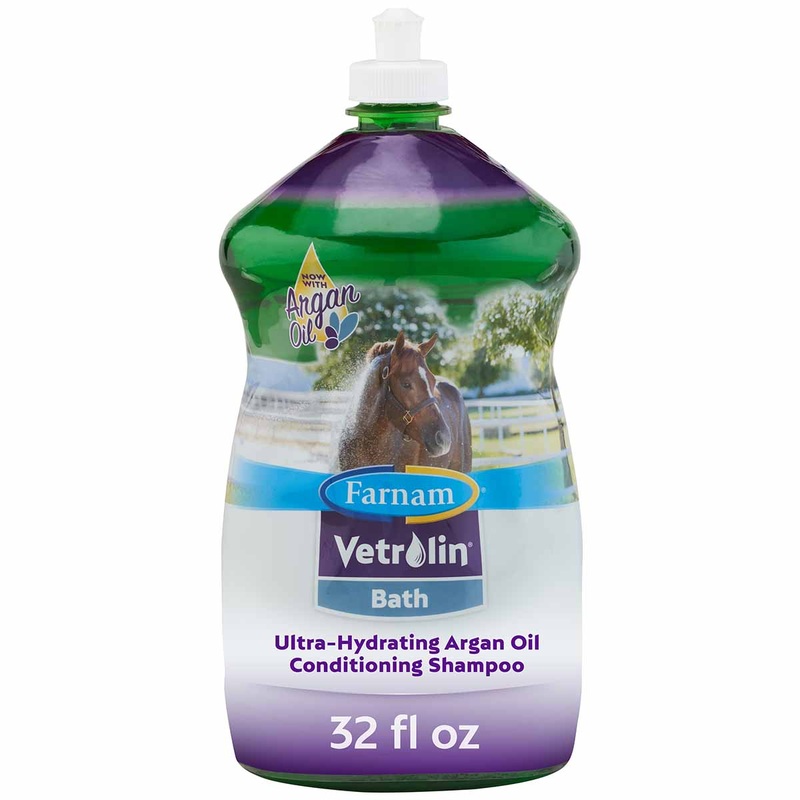 Directions: Vetrolin Bath is easy and economical to use. Mix 2 to 4 ounces of Vetrolin Bath in 2 gallons of water in a bucket. Wet horses coat thoroughly and lather entire body. Let stand for 3 minutes. Rinse. For superb sheen and manageability, follow with Vetrolin Shine.