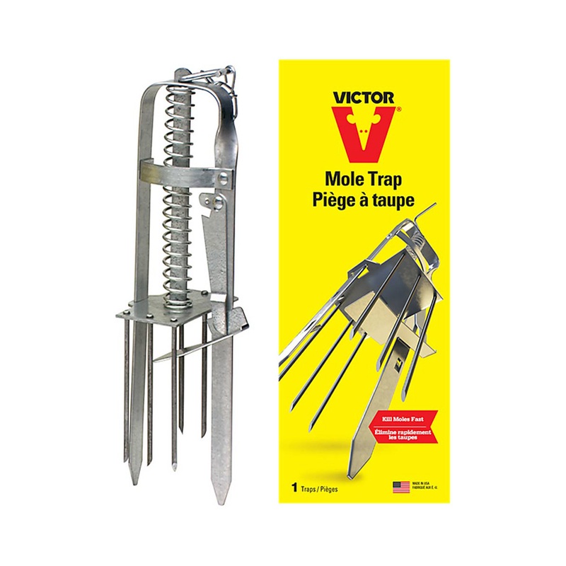 The most effective spear-type trap available for eliminating moles from lawns and gardens! This trap is sometimes referred to as the harpoon or a plunger-style trap. The Victor spear-type mole trap has six (6) sharply sheared points which are propelled thr