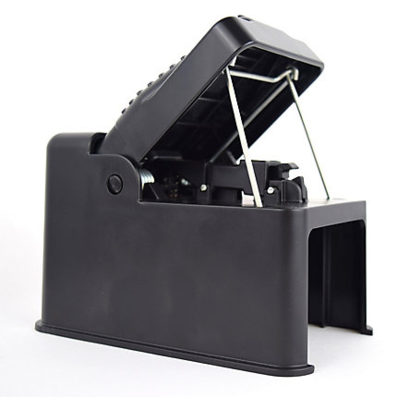 - Set the trap by using two thumbs or by stepping on the set lever until it clicks into place.