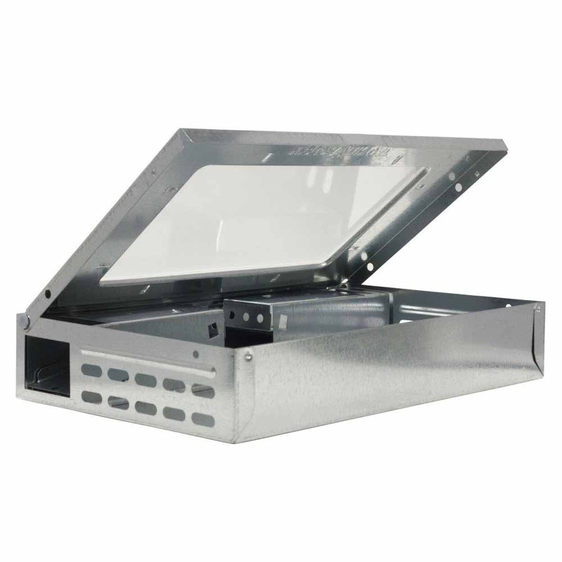 The Tin Cat holds up to 30 mice and features an escape proof mechanism. The low profile allows it to be placed under pallets, in ceilings, or other tight spaces. Very easy to check through the clear top of the trap. Mice can be releasedby opening the top cover.