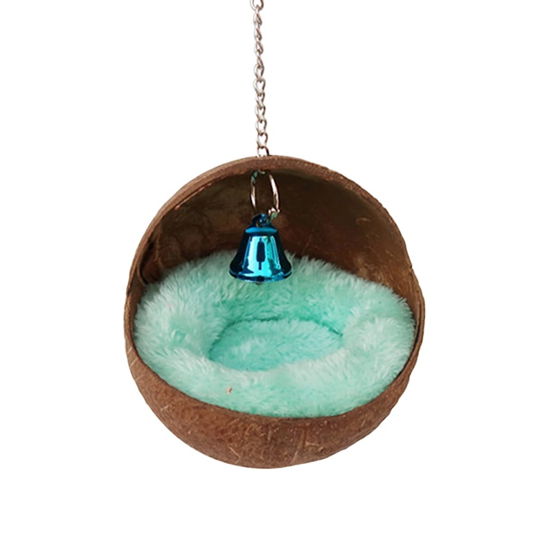 Description: Material: Made from a completely natural coconut shell, environmentally friendly. Safe,comfortable environment for your small pets. With Cushion: With a soft mat cushion, random color, provides a sheltered warm place for birds. Function: Comfo