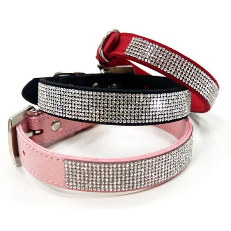 VIP Bling Pet Dog Collarby Dogo Pet FashionsBring on the Bling! Rhinestone studded dog collar over soft touch faux suede. All pups can now enjoy the luxury VIP life style.Choice of: Pink, Red or BlackSizes: XS - LDesigned for Small & Toy breedsUsually ship