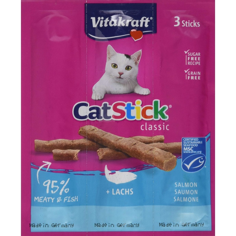 Address manufacturer/importer Mahndorfer Heerstr.9, 28307 Bremen sugar -free recipe, without dyes, without artificial flavor enhancers.To be easily portioned by breaking grooves.Meat/fish content over 80 %.With salmon.3 CAT stick of 6g each. ANSCHRIFT HERSTELLER/IMPORTEUR Mahndorfer Heerstr. 9, 28307 BremenZuckerfreie Rezeptur, Ohne Farbstoffe, Ohne knstliche Geschmacksverstrker. Durch Bruchrillen leicht zu portioniere. Fleisch-/Fischanteil ber 80 %. Mit Lachs. 3 Cat-Stick zu je 6g.Vitakraft Cat Stick Mini, 18 g