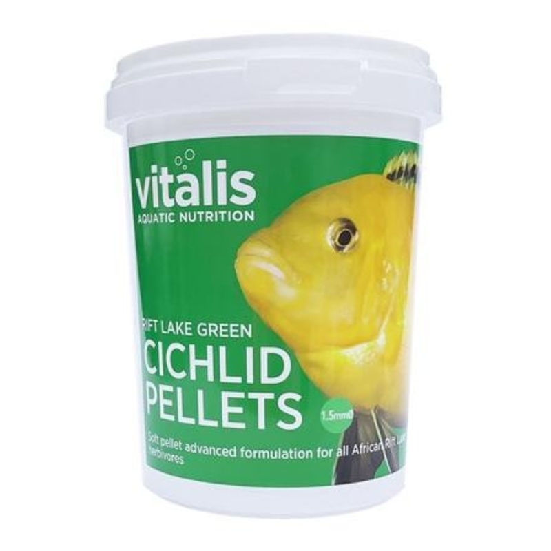 Vitalis Aquatic Nutrition Cichlid Herbivore (Green) Rift Lake Pellet 1.5mm 140gVitalis Rift Lake Cichlid Pellets (formally known as Newera Rift Lake Cichlid Pellets Green) are made from a unique blend of algae, vitamins and minerals to provide a complete d