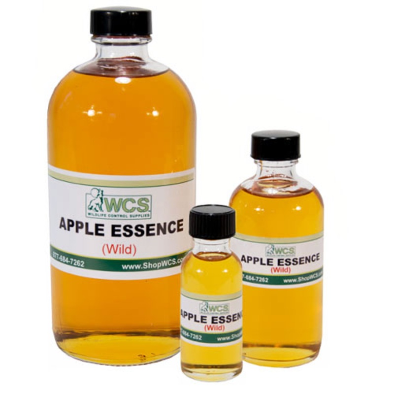WCS Apple Essence, a.k.a. Apple Oil is good when used straight as a trailing scent or in formulation. Loud, appealing scent of ripe apples.Brand:Wildlife Control SuppliesTarget Pests:Muskrat,Raccoon,Beaver,Bear,Rabbit
