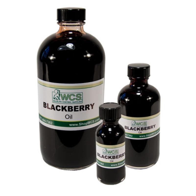 WCS Blackberry Oil has a rich, intensely sweet odor that is highly attractive to raccoon, grey fox, and bear.Brand:Wildlife Control SuppliesTarget Pests:Raccoon, Grey Fox, Bear