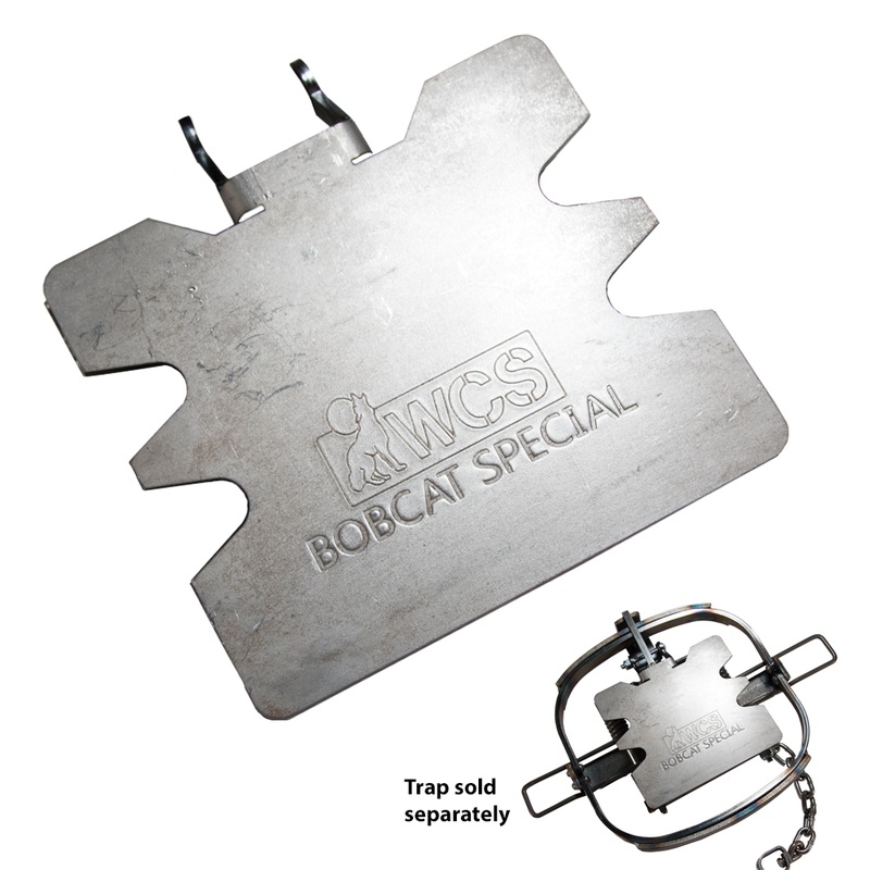 WCS "Bobcat Special" Expanded Trap Pan specifically made for retrofitting Pro-75 or CDR Traps for bobcat trapping, as seen in Clint Locklear's Cat Collector DVD. The WCS "Bobcat Special" measures 5" wide x 4.5" L and is laser cut from durable 12 gauge stee
