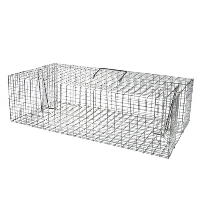 The WCS Pigeon LP Trap is a pigeon trap that has two (2) bobbin-type doors, each with a unique “foot” on the bobbins preventing them from becoming jammed once birds are captured and push against them.