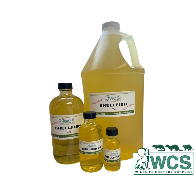 This synthetic shellfish oil is a light yellow color, not the clear watered down shellfish oil you may be accustomed to seeing. Odor of shellfish fills the air when you open the container. Dip a stick in the bottle and toss in the rear of a cage trap or behind a conventional trap such that the animal has to pass over the triggering pan to get to it.