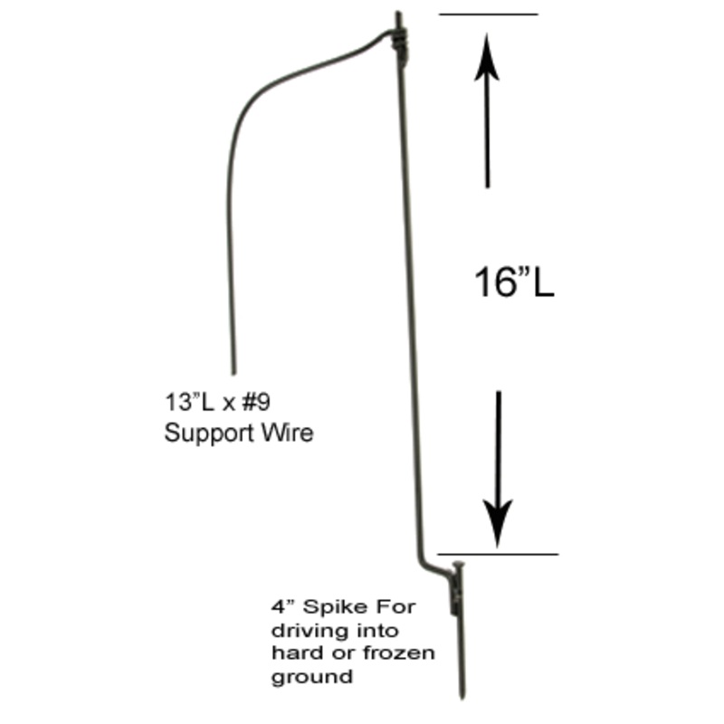 WCS Snare Supports are one of the best and widely utilized support systems on the market today. Very easy and simple to use. The RK Snare support has made positioning that snare loop extremely easy with 13 inches of #9 wire wrapped and welded to a 16inch 1/4″ steel support rod. The 4 inch spike which is welded to the bottom of the rod is off-set, making it easy to pound into hard or frozen ground. Grip the top of the spike with vise-grips for removal from frozen soil.