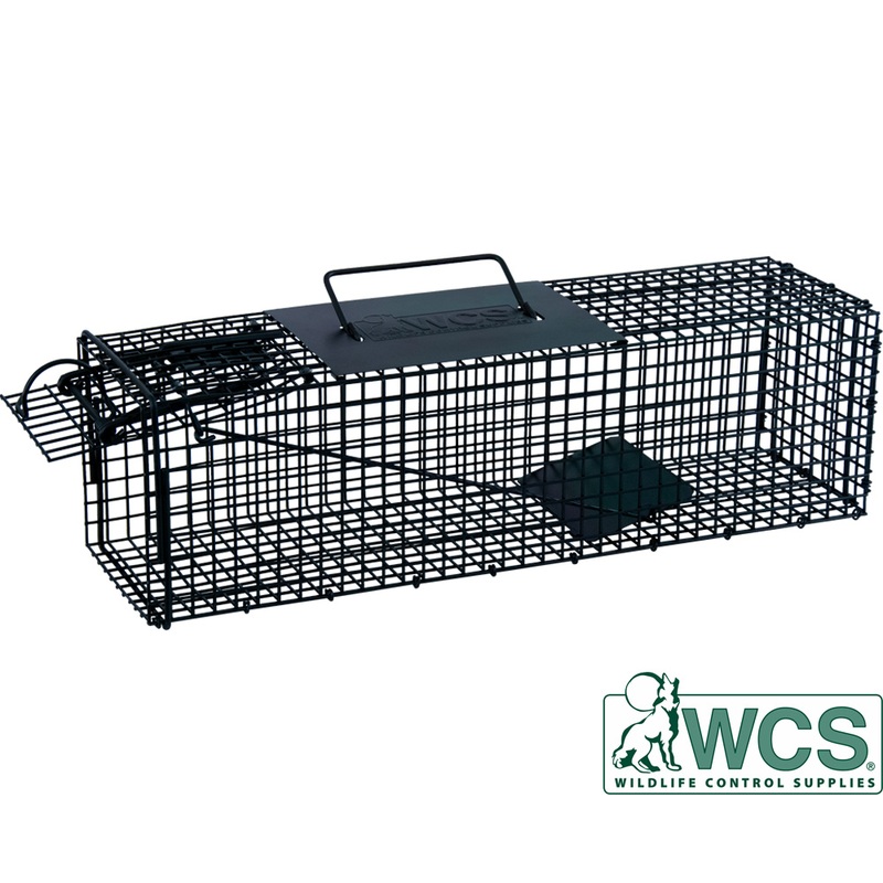 TheWCS Special Squirrel Professional Squirrel Cagewas designed by professionals for professionals. Designed by WCS to meet our exact specifications. This trap is special, not because we say so, but because wildlife control professionals say so! It contains the construction and features professionals had been looking for in a squirrel-sized commercial-grade trap. Newly improved with black tone plating to help camoflauge your trap and resists rusting!The perfect squirrel trap that professionals have used for years! This trap is also great for Rats,Chipmunks, Muskrats, and Weasels. Constructed of 1/2″ x 1/2″ mesh, which makes for a much more durable trap, the Special Squirrel Pro is able to stand up to the rigors of day-to-day use by professionals. This trap has a simplified locking mechanism and finger grip, allowing you to set the trap with one hand if standing on a ladder while setting. A door guide was installed to make setting this trap smooth and easy every time!