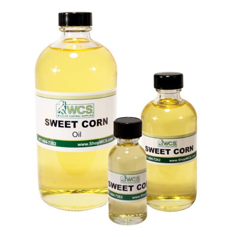 WCS Sweet Corn Essence Oil - this oil elicits the penetrating smell of sweet corn at its' height of ripeness. Uncap the bottle and the fragrance fills the air. Very attractive to raccoon, muskrat, skunk, opposum, deer, etc.Brand:Wildlife Control Supplies