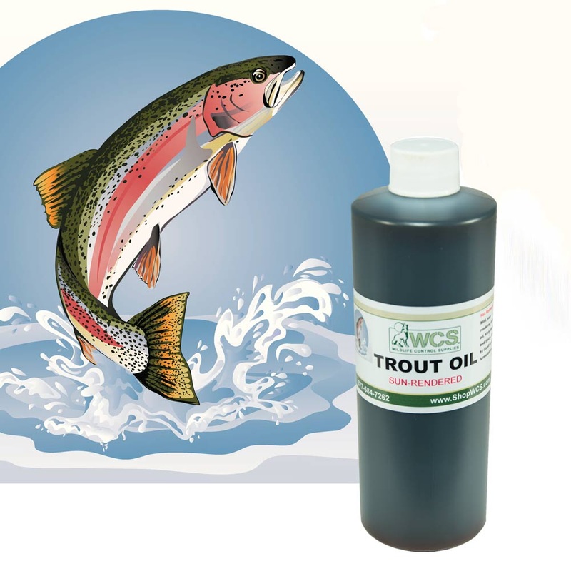 WCS Trout Oil (Sun Rendered) This stuff is the real deal ! Dark, Thick, almost syrupy, this sweet smelling fish oil has long-distance drawing power. This is not the rotten smelling oil some others may be selling. Just an even, mild fish smell. This trout oil is “top shelf” for lure formulation, as well. Great for Raccoon, Mink, Bear, Bobcat, and Canines, etc.