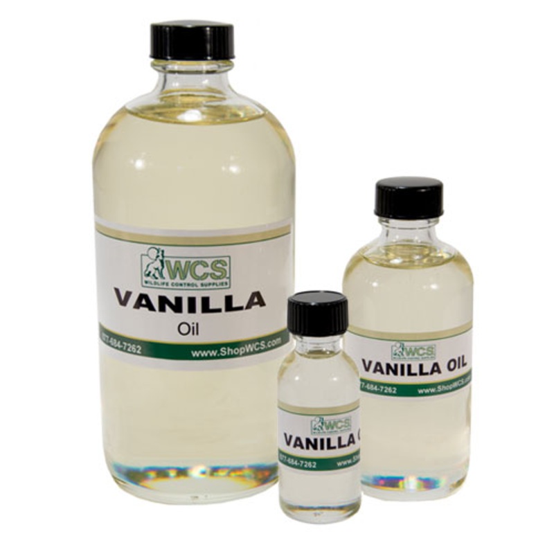 WCS Vanilla Oil is highly attractive to raccoon, deer, beaver, and muskrat. This is NOT Vanilla flavoring, it is Vanilla Fragrance Oil, very pronounced and sweet smelling.Brand:Wildlife Control SuppliesTarget Pests:Raccoon,Deer,Beaver,Muskrat