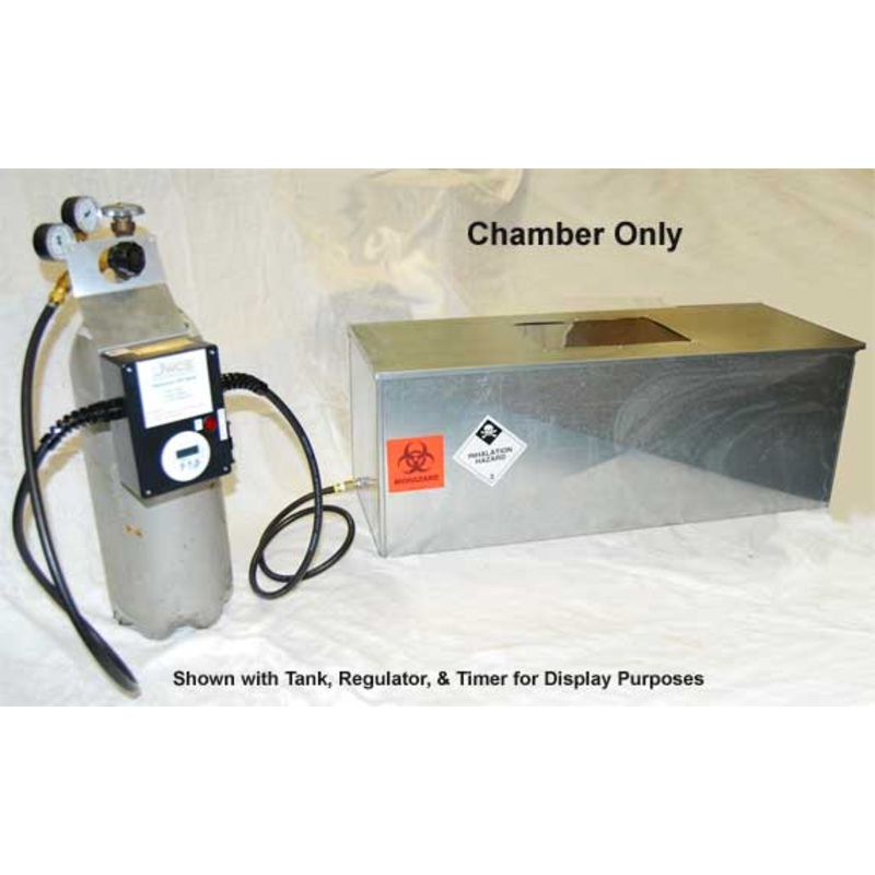 TheWCS Wildlife Euthanasia Chamberisconstructed of 22 gauge galvanized sheet metal. This is a top loading model which allows you to place both the animal & trap into the chamber eliminating unnecessary contact.