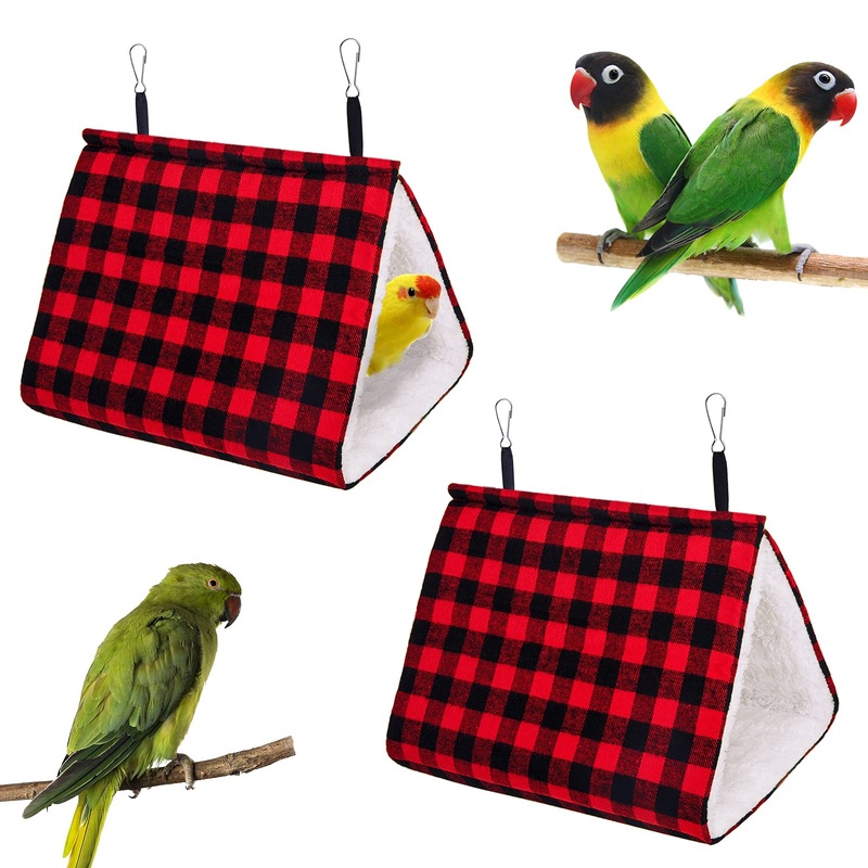 Wehhbtye 2PCS Winter Warm Bird Hanging Hammock House-Buffalo Plaid Bird Nest Snuggle Shed Hut,Plush Fluffy Finch Cage for Hamster Budgies Parakeet Cockatiel Cockatoo Lovebird Parrot Pouch Hut Hideaway