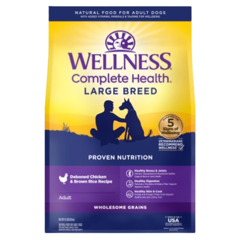 E40301677Wellness Complete Health Natural Large Breed Adult Chicken and Brown Rice Recipe Dry Dog Food
