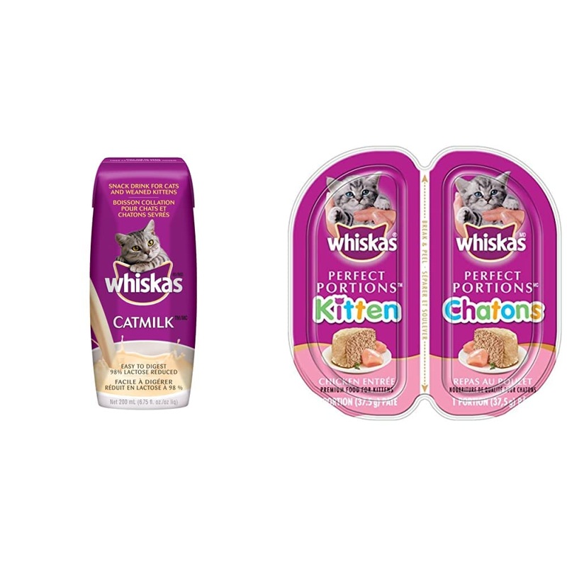 Whiskas Catmilk – 200ml (24 Pack) & Perfect Portions Kitten Wet Cat Food Pat – Chicken Entr e 75g (24Pack) Cat Food + Wet Cat Food Chicken Entr e