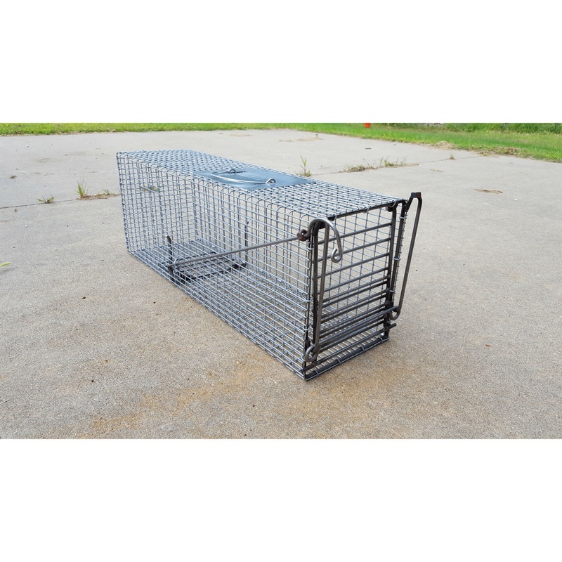 Wickenkamp Model 28 Live Cage Trap measures 10″H x 8″W x 28″L and is built Wickenkamp TOUGH. It’s made of 1″ x 1/2″ x 14ga. galv. wire and 3/16″ steel rod. It’s thesame as Model 28; plus bottom half of door has closer horizontal spacing of rods (less than 1/2″ apart). Top of door has a 1 1/8″ gap to allow Euthanizing Stick to be inserted. Animals can’t reach outside of trap; therefore less disturbance of outer perimeter and less debris in the trap. Great for Rabbit, Squirrel, Skunk, & Raccoon.