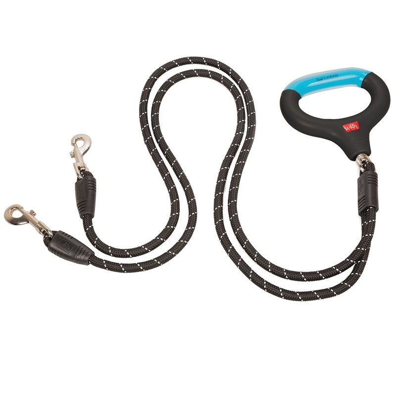Wigzi 2 Dog Leash Untangles Automatically with 360? Spin Technology & Patented Gel Filled Handle – 4.5 feet of reflective rope per dog. Weight limit of 200 pounds total. The Wigzi Dual Doggie Gel Rope Leash is great for dog walkers shelter workers or any dog lover with more than one furry family member. It makes walking two dogs so much easier because it?s one leash that has two leads and they won?t get tangled. The built-in coupler makes sure of that with its smooth spinning action that untangles leashes automatically.