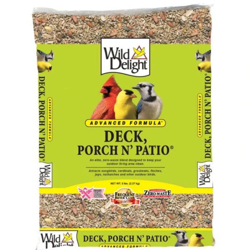 - Wild delight advanced formula deck, porch n’ patio wild bird food attracts songbirds, cardinals, grosbeaks, finches and more.