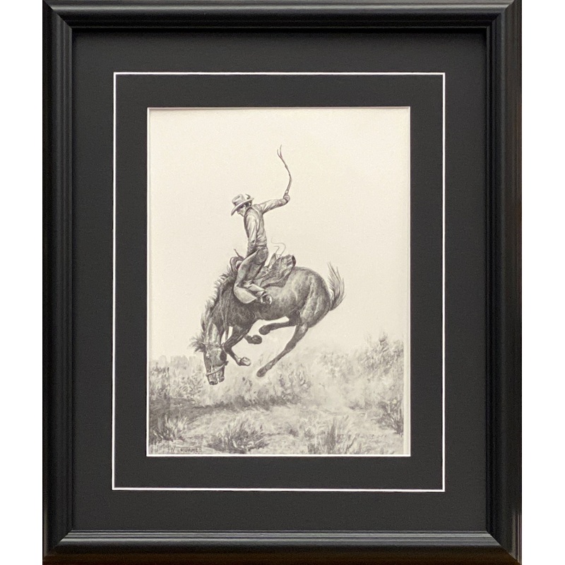 Will James Cowboy RIding Bucking Horse Western Art Print-Framed 17 x 20