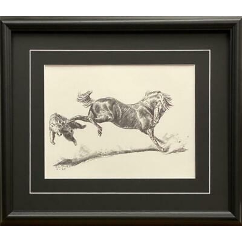 Will James Fighting it out bear and horse Art print-Framed 20 x 17