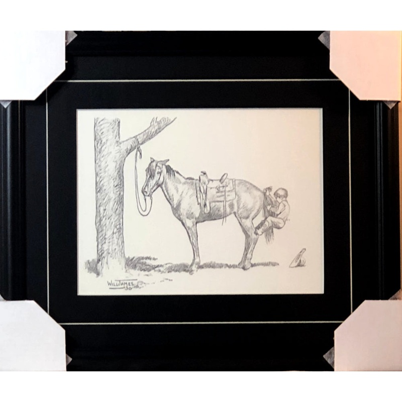 Be the first to review “Will James Getting on the Hard way Boy Horse Pencil Art Print-Framed 19.5 x 16.5”