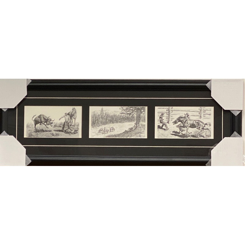 Will James Take my hat Pencil Sketch Western Trilogy Art Print-Framed 28 x 10