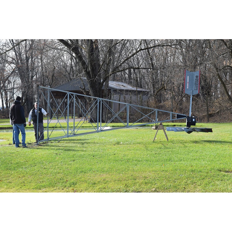 Hinges install at the base of the windmill for easier installation. They are also useful to lower the tower for future maintenance or impending storms. Hinges attach to the ground stake rods.