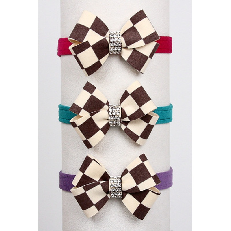 Windsor Check Nouveau Bow Dog Collars by Susan Lanci – 2 Teacup (sz 1)