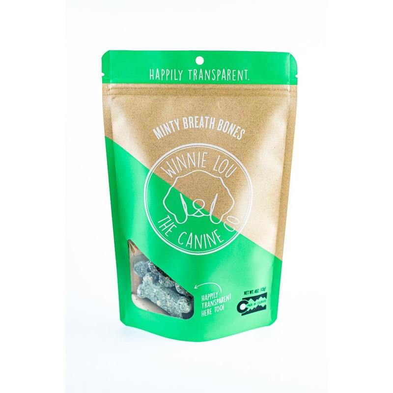 What is nutritious, tastes like mint chocolate chip, & freshens your pup's breath?! That would be our new Minty Breath Bones. Created with Spearmint & Parsley to freshen pesky breath, Carob for a touch of sweetness, Colorado applesauce, & Spirulina! Spirul