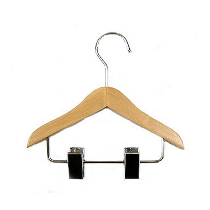 Wood Dog Clothing Hanger with Clips - 2 pcsPerfect for dresses with matching panties, pants for skirt. Or for pants, skirts and small blankets. 6 1/2" Inch Wooden Dog Clothing Hanger WITH Clip.Sold In Pairs (2 hangers per order)