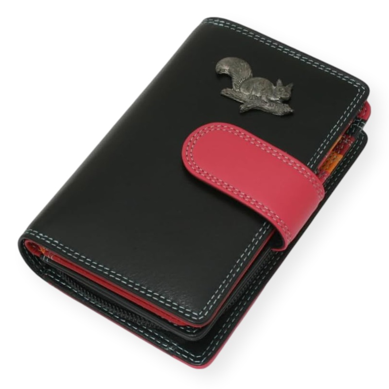 Woodland Animals Ladies Leather Purse with Coin Pouch RFID Safe Black & Pink
