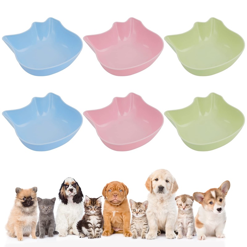 XINRUI 6 Pcs Cat Bowls Raised Anti-slip Kitten Bowls Multi-purpose Cat Food Bowls Plastic & Cute Pet Bowl Dishs for Pet Cat Dog Small Animal