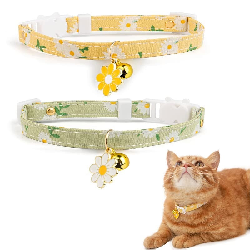 Handmade with loveWe are a Group of Cat lovers, to whom Stylish and Comfortable Collars with love, if you are not satisfied with our Cat Collars, please contact us for a refund or replacement.GIFTS for CATSCat collars with small bells.lovely design will be the best gift for your kitty (Holiday Gift Guide), i.e. for various parties, festivals, wedding and other Occasions.Adjustable sizeOur CAT Collars are adjustable from 7-11 “”Inch with a Width of 2 5″” Inch, Perfect for your little kitten or adult cat.(Please Measure Your Pets Neck Circumference Before Purchg to Ensure The Collar Fits Properly.).Safe Breakaway Cat CollarThe Sturdy Detachable Safety Release Buckle Can Be Unlocked With A Certain Amount of Force.if Your Pet Is Trapped, It Can Freely Break Free To Avoid The Pet Being Strangled by the Collar, Ensure The Safety Of The Pet.Soft materialCotton Breakaway Cat Collar with Bell, Our Cat Collar is only 2 10 Ounce, Light Weight, Skin-Friendly and Safe.Handmade with LoveWe are a group of cat lovers, we handcraft stylish and comfortable collars with love, if you are not satisfied with our cat collars, please contact us for a refund or replacement. GIFTS FOR CATSCat collars with small bells.Lovely design will be the best gift for your kitty(holiday gift guide),also for various parties, festivals, weddings and other occasions. Adjustable SizeOur cat collars are adjustable from 7-11″” inch with a width of 2 5″” inch, perfect for your little kitten or adult cat. (Please measure your pet’s neck circumference before purchg to ensure the collar fits properly.). Safe Breakaway Cat CollarThe sturdy detachable safety release buckle can be unlocked with a certain amount of force.If your pet is trapped,it can freely break free to avoid the pet being strangled by the collar, ensure the safety of the pet. Soft MaterialCotton Breakaway Cat Collar with Bell, our cat collar is only 2 10 ounce, light weight, skin-friendly and safe.XIXKOLYU 2 Pack Cotton Breakaway Cat Collar with Bell,Yellow Green Flowers Pendant Cute Cat Collar Kitten Collar,Ideal for Girl Cats Boy Cats Gelb Grn