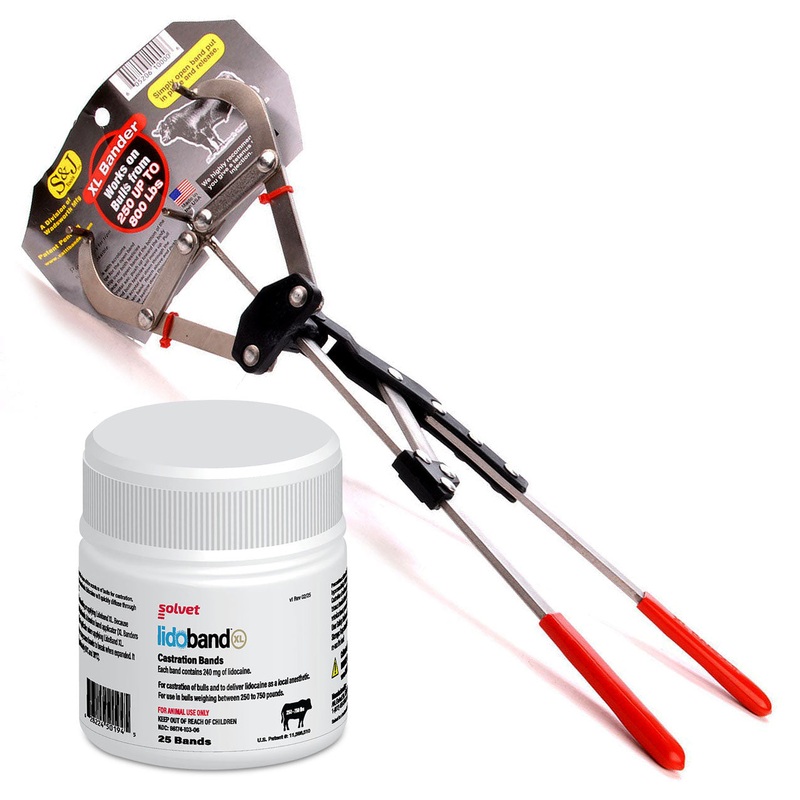 XL Bander with Lidoband XL Castration Bands, 25 ctThis combination provides a humane and effective bloodless castration solution for larger bulls weighing between 250 and 750 pounds. The XL Bander is a plier-type applicator designed for ease of use, while