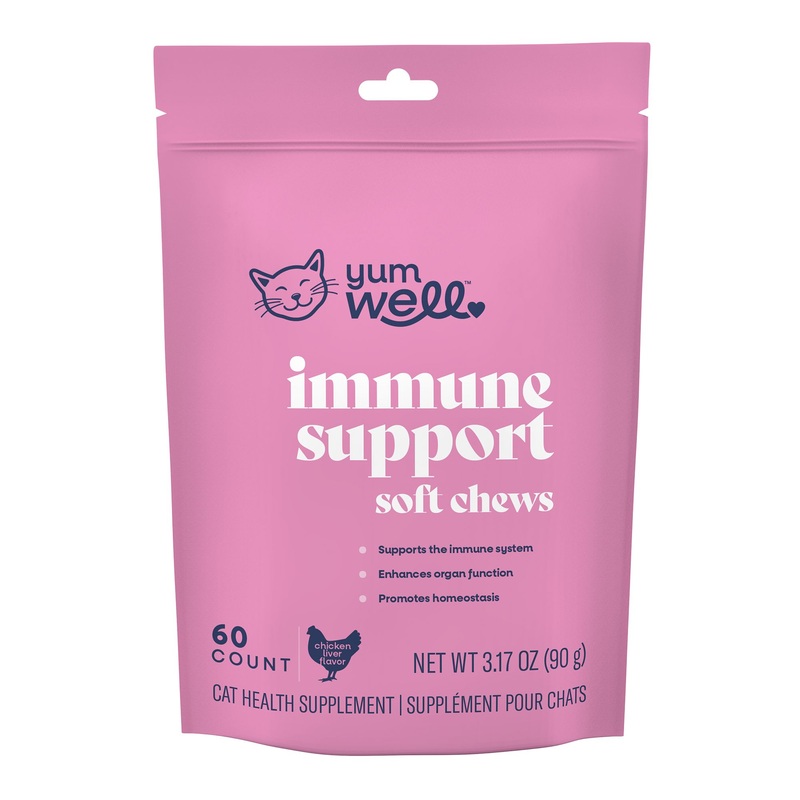 DESCRIPTION YumWell brand is for promoting strong immune systems. Make our Immune Support Chews an essential part of your cat's routine so purr-fectly healthy playtime happens every day. Only at PetSmart.Features:Contains the amino acid L-Lysine to:Support