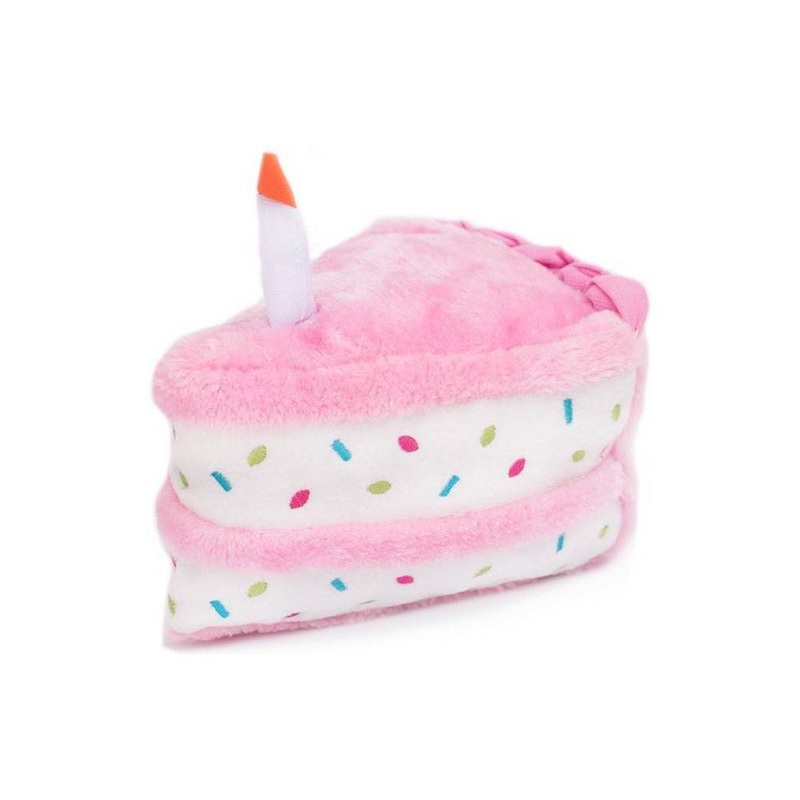 Celebrate your dog s birthday with an adorable ZippyPaws Birthday Cake Plush Dog Toy in Pink! 1 Blaster squeaker inside Great for dogs of all sizes Stuffed Why We Love It: This tasty slice of cake comes with colored frosting sprinkles and a cute candle. Pe