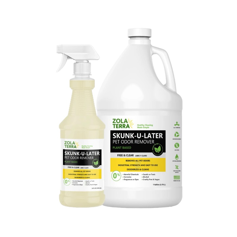 Skunk-U-Later is a ready-to-use cleaner and odor remover that works best when applied at full strength. Removes skunk odor from people, pets and surfaces like carpet, concrete, vinyl, wood, and even your lawn (if used in a garden sprayer). Cleans and deodo